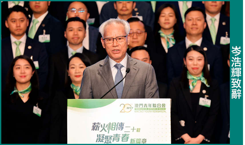 岑浩輝下午出席澳門青年聯合會第七屆架構成員就職典禮。他致辭時表示,青年人的成長與發展,離不開對時代機遇的理解與把握。國家公佈的“十五五”規劃綱要,提出了多項促進澳門長期繁榮穩定發展的舉措,充分體現了國家對澳門的大力支持與高度關懷。當前,特區政府正在加緊編製澳門“三五”規劃,主動對接國家“十五五”規劃,謀劃澳門未來五年的經濟與社會發展,推動澳門更好融入和服務國家發展大局。就此,他希望廣大青年積極出謀劃策,提出青年一代的意見和建議,與特區政府一起共同做好這件大事。