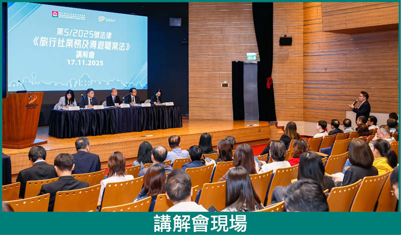 為提升旅遊服務質素與從業員專業能力,各部門協同舉辦服務禮儀、人工智能應用等培訓,並將研學旅遊指導師納入“澳門職業技能認可基準(MORS)”,提供清晰職業發展路徑。依托大灣區旅遊教育培訓基地,深化區域人才合作,推動“一試多證”認證,促進職涯發展。因應第5/2025號法律《旅行社業務及導遊職業法》於2026年生效,旅遊局向業界闡釋法律重點,確保順利過渡。