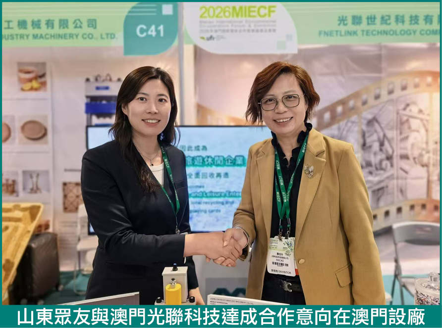 【本報訊】來自山東滕州市的山東眾友重工機械有限公司首次參加“2026年澳門國際環保合作發展論壇及展覽”(下稱:環保展),一連三天的展覽,令到該企業負責人趙月梅感歎意想不到的是效果非常滿意,短短三天時間,成功與來自中國內地、澳門,以及葡萄牙多間企業進行深度洽談,更與一家買家當即達成購買該廠生產液壓機意向。