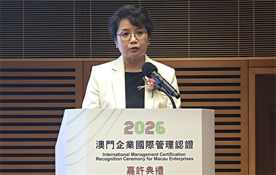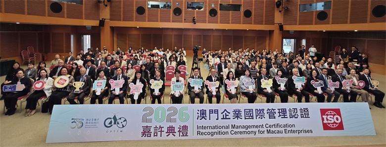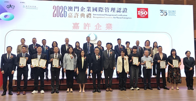 【本報訊】澳門生產力暨科技轉移中心(下稱“生產力中心”)於4月2日假澳門科學館舉行“2026澳門企業國際管理認證嘉許典禮”,表彰共134家持續持有國際認證的本澳企業。典禮依企業連續持證年資頒發金獎、銀獎及銅獎,並特別增設“綜合管理成就獎”,以嘉許模範企業。