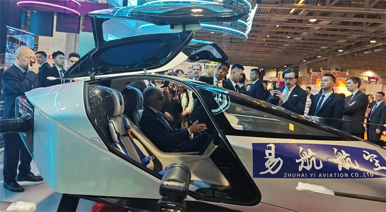 葡萄牙議會議長阿吉亞爾-布蘭科在低空經濟展館親自試乘
