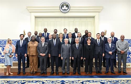 行政長官岑浩輝與第43屆葡語都市聯盟(UCCLA)會員大會代表團一行合影。