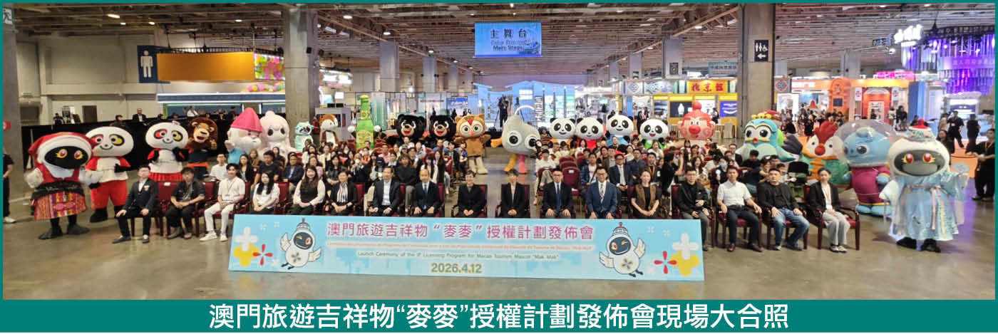 旅遊局於12日假第十四屆澳門國際旅遊(產業)博覽會會場舉行發佈會,介紹相關計劃詳情。會上亦展示了具合作意向的澳門企業所提出的概念產品,涵蓋旅遊紀念品、生活用品和食品等,展現“麥麥”作為IP品牌的多元應用潛力。旅遊局局長文綺華、經科局知識產權廳廳長鄺信昌、文化局文創產業促進廳廳長何鴻斌、生產力中心副理事長曾澤瑤、連鎖加盟商會主席黃仁民、廠商會副理事長鍾淑蘭等嘉賓出席。