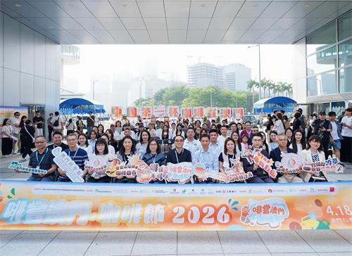 【本報訊】2026419日,由澳門青年發展服務中心(下稱“青服中心”)與澳門科學館聯合主辦的“春季啡嘗澳門咖啡節”,於澳門科學館心形樹廣場正式開幕。活動將持續至61日,中央人民政府駐澳門特別行政區聯絡辦公室教育和青年部李雪飛部長、經濟及科技發展局鄭曉敏副局長、衛生局戴華浩代副局長、市政署文康及公民教育廳龎筱韻代廳長、旅遊局旅遊產品及活動廳李雲慧代廳長、文化局公共圖書館管理廳林穎娜代廳長、教育及青年發展局青年發展處趙寶威處長、澳門科學館張雄發副館長、澳門旅遊大學管理及專業發展學院馮智廣講師、澳門青年發展服務中心黃永曦總幹事、中國工商銀行(澳門)股份有限公司中小企業市場總監林毓霞博士出席啟動儀式,共同見證這場以支持青年創業為核心、以傳承咖啡文化為脈絡的盛事開幕,與現場來賓、媒體朋友們一同重溫中國第一杯咖啡與澳門三百年的文化情緣,續寫這座中西交融城市的時代新篇章。