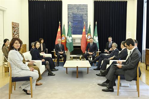 出席會面的還有中國駐葡萄牙大使楊義瑞、社會文化司司長柯嵐、行政長官辦公室主任陳格、澳門駐里斯本經濟貿易辦事處主任加沛兒,以及葡萄牙國務部長兼外交部長保羅•蘭熱爾(Paulo Rangel)、葡萄牙駐澳總領事雷德生(Alexandre Leitão)等。