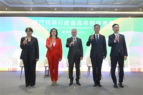 招待酒會的主禮嘉賓還包括西班牙參議院第二副參議長孔查‧安德雷烏‧羅德里格斯(Concha Andreu Rodríguez)、中國駐西班牙大使兼駐安道爾大使姚敬、行政長官辦公室主任陳格及招商投資促進局行政管理委員會主席謝永強。特區政府及企業家代表團成員、駐西班牙大使館代表,以及西班牙工商界等社會各界人士共約300名嘉賓出席。