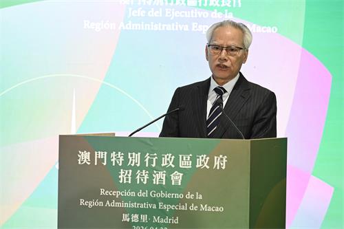 【本報訊】行政長官岑浩輝於當地時間22日傍晚,出席在西班牙馬德里舉行的澳門特別行政區政府招待酒會。他致辭時表示,積極拓展與西語國家的合作是特區政府的戰略發展方向,2025年特區政府和橫琴執委會共同建立了中國—葡語(西語)國家經濟貿易服務中心,並設立初期規模10億元人民幣的中葡(西)經貿發展基金,積極推動中葡平台功能延伸至西語國家,大力拓展市場機遇,加強經貿往來。