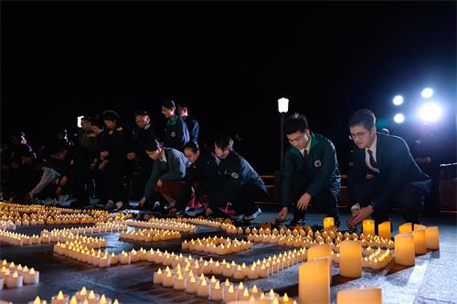師生參與在鴨綠江畔舉行的燭光追思活動