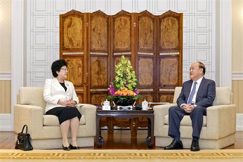 【本報訊】行政長官賀一誠今(13)日在政府總部與第十三屆全國政協副主席、中國宋慶齡基金會主席李斌會面,雙方就持續加強合作及青年人才培養等議題交換意見。