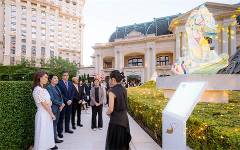 燈藝展今天在上葡京綠茵勝境花園隆重開幕,中央人民政府駐澳門特別行政區聯絡辦公室宣傳文化部萬速成部長、澳門特別行政區政府文化局梁惠敏局長、澳門特別行政區政府旅遊局文綺華局長、澳娛綜合常務董事何超鳳女士,以及澳門美術協會會長陸曦先生出席主持啟動儀式。
