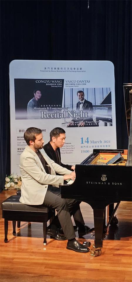 活動邀請了兩位國際著名鋼琴家,新加坡施坦威藝術家王聰瑀、葡萄牙鋼琴家瓦斯科•丹塔斯演出,他們是首次來澳門舉行音樂會,他們分別進行獨奏多首獨奏樂曲後,為觀眾帶來多首四手聯彈樂曲,整晚的活動精彩程度非常緊湊和精彩,現場也得到現場觀眾的大力支持和迴響。為澳門市民帶來一個與別不同的音樂盛宴。