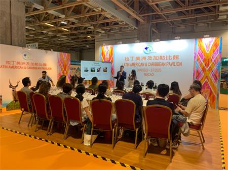 澳門亞太拉美交流促進會自2015年起便參與澳門國際旅遊(產業)博覽會,在各拉美及加勒比國家的支持下,一起在旅博會內設立拉丁美洲館。隨著旅博會的發展步伐,拉美國家的參與度也相繼提昇,今屆拉丁美洲及加勒比館內將增至14個國家及企業展位。其中多明尼加共和國是首次參展,該國希望能夠通過在澳門舉辦的旅博會向大家介紹這個位於加勒比海景色怡人的島國,以及多部賣座電影例如《加勒比海盗》和《侏羅紀公園》等都在多明尼加共和國取景。