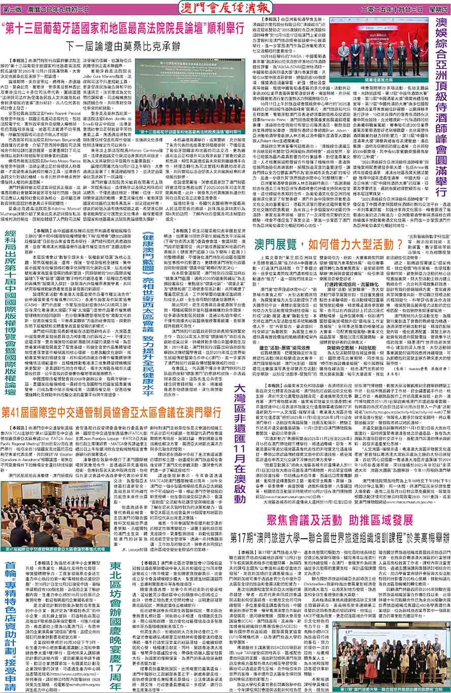 澳門會展經濟報「Facebook專頁」 Click此>>查閱本報「二〇二三年之前」報紙及資訊