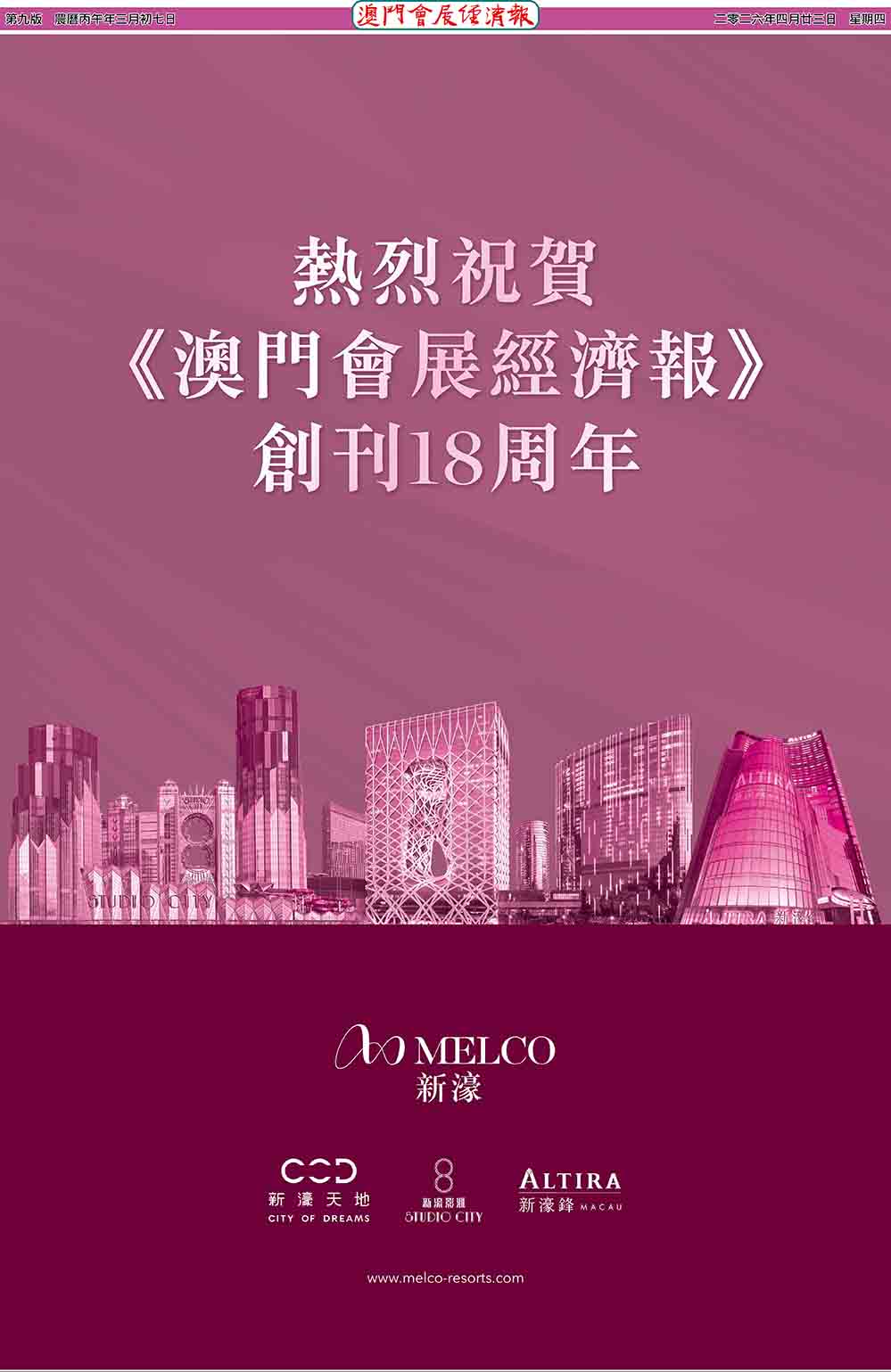 澳門會展經濟報「Facebook專頁」 Click此>>查閱本報「二〇二四年之前」報紙及資訊